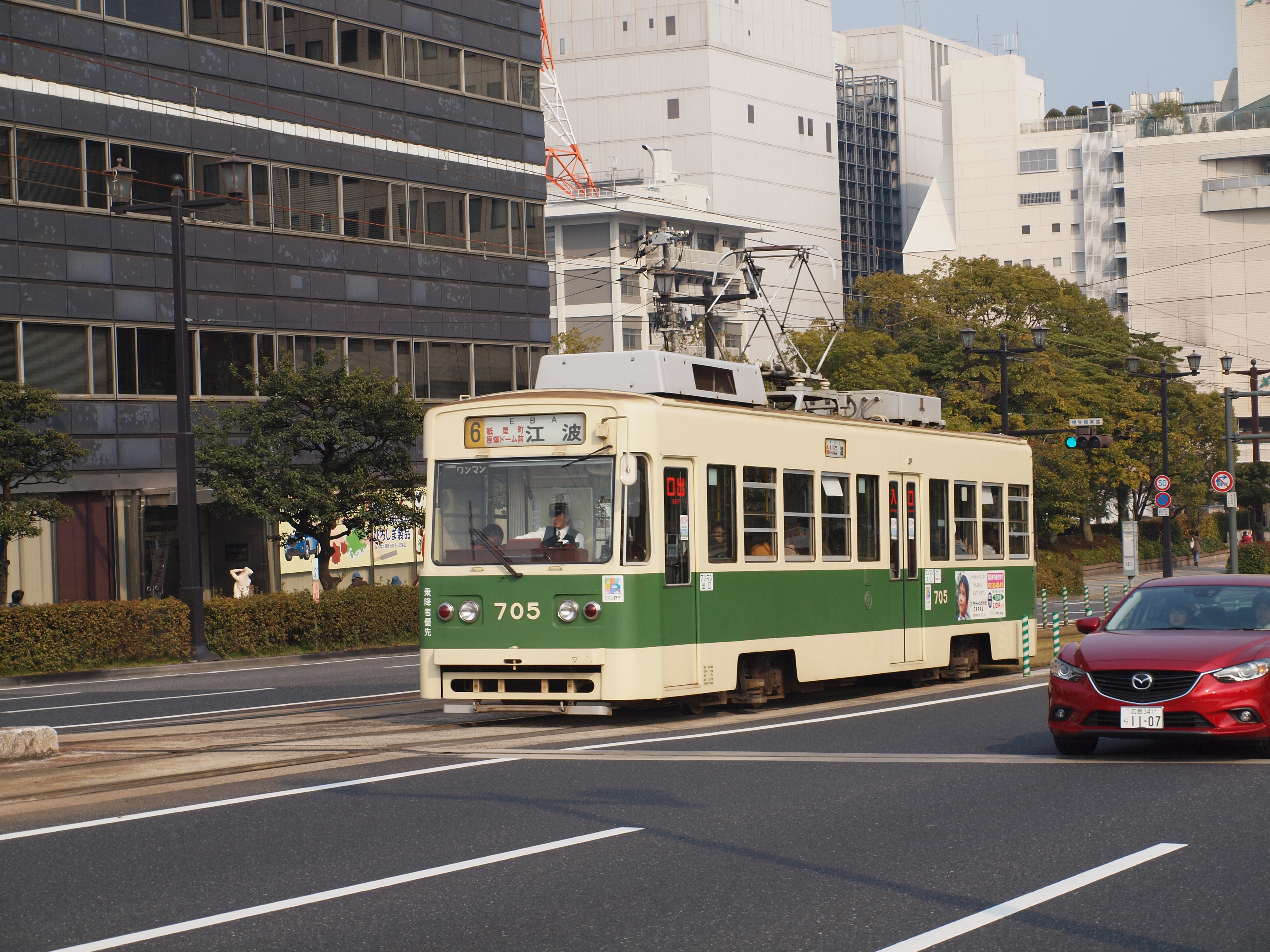 10 (左)広島電鉄705号車 (右)広島電鉄3003号車(元・西鉄福岡市内線1206号)