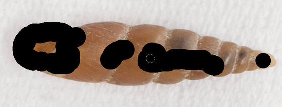 被写体は今しがた大学構内でテキトーに拾ってきたキセルガイである。ティッシュペーパーの上に置いて一眼レフ+三脚で撮影した元画像(Fig. 1左)を、下記の加工により黒バック(Fig. 1右)および白バックに変える。